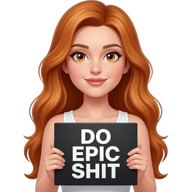 sexy girl with long ginger hair and ginger eyes wearing a white tanktop is holding a black sign with DO EPIC SHIT written on it emoji