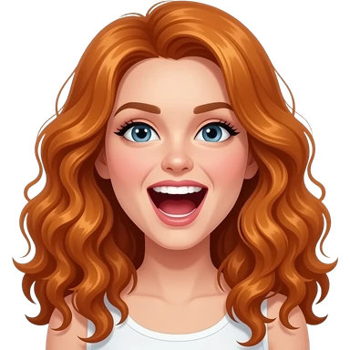 sexy girl with long curly ginger hair and ginger eyes is laughing out loud emoji