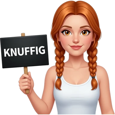 sexy girl with long ginger braids and ginger eyes wearing a white tanktop is holding a black sign with KNUFFIG written on it emoji