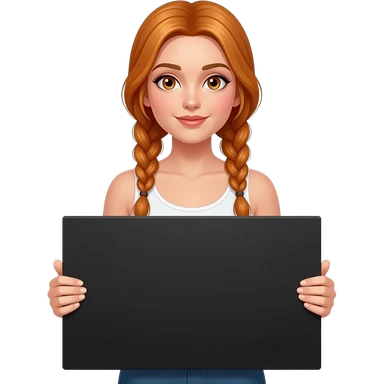 sexy girl with long ginger braids and ginger eyes wearing a white tanktop is holding a big black sign emoji