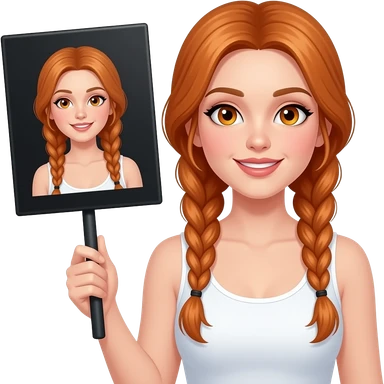 sexy girl with long ginger braids and ginger eyes wearing a white tanktop is holding a black sign with NEIEN! written on it emoji | AI Emoji Generator