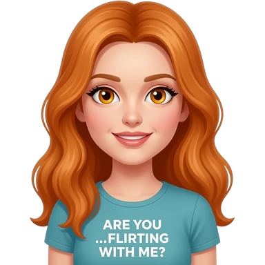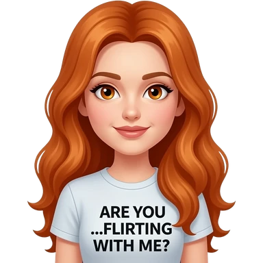sexy girl with long ginger hair and ginger eyes a top with ARE YOU ...FLIRTING WITH ME? written on it emoji