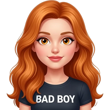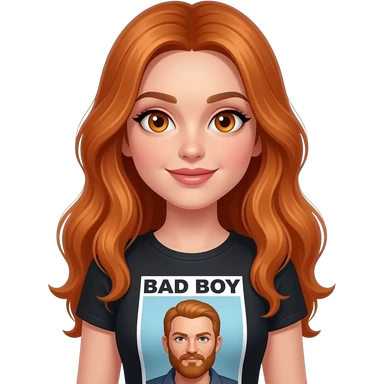 sexy girl with long ginger hair and ginger eyes a top with BAD BOY written on it emoji