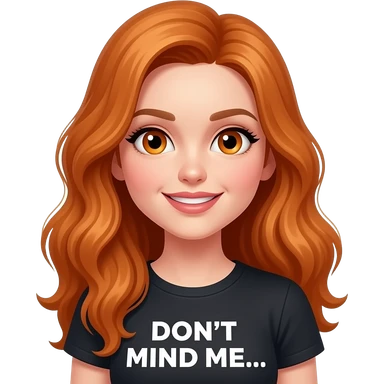sexy girl with long ginger hair and ginger eyes a top with DON'T MIND ME... written on it emoji