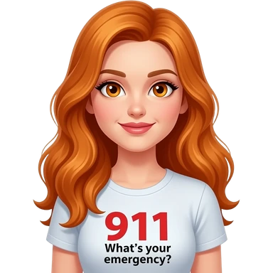 sexy girl with long ginger hair and ginger eyes a top with 911 What's your emergency? written on it emoji
