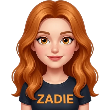 sexy girl with long ginger hair and ginger eyes a top with ZADIE written on it emoji