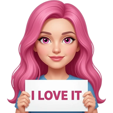 sexy girl with long pink hair and pink eyes holding You Are WORTH IT sign emoji