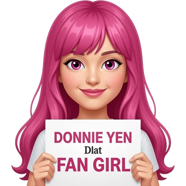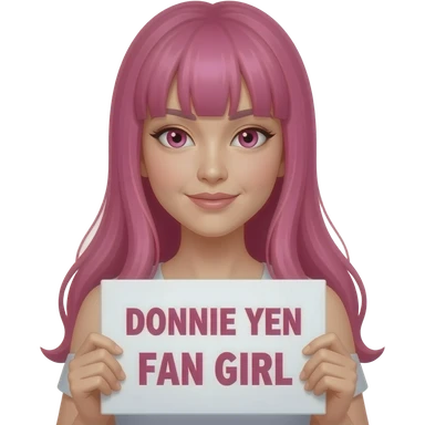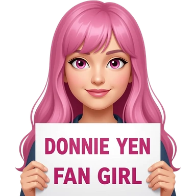 sexy girl with long pink hair and pink eyes holding DONNIE YEN FAN GIRL sign emoji