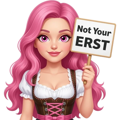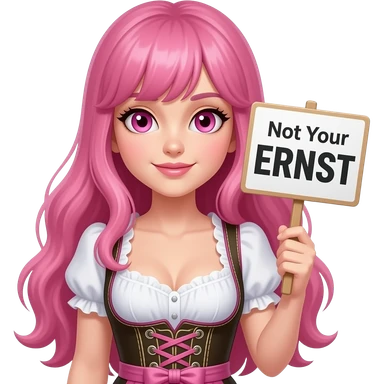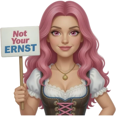sexy girl with long pink hair and pink eyes wearing a dirndl holding a Not Your ERNST sign emoji