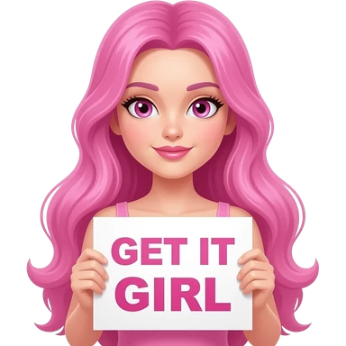 sexy girl with long pink hair and pink eyes wearing a dress holding a GET IT GIRL sign emoji