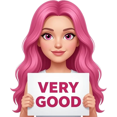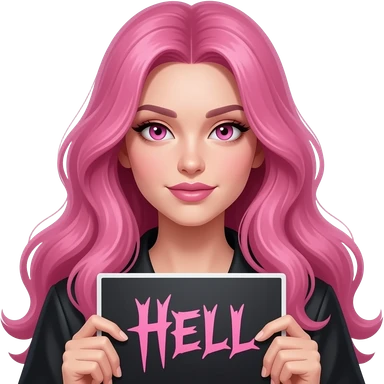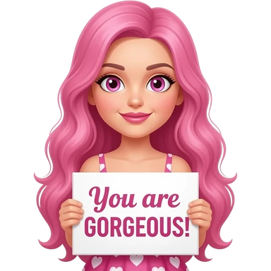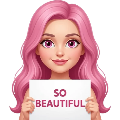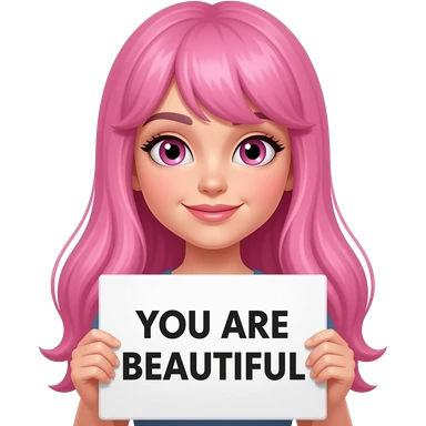 sexy girl with long pink hair and pink eyes wearing a holding a YOU ARE BEAUTIFUL sign emoji