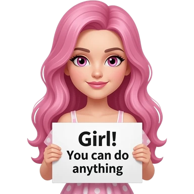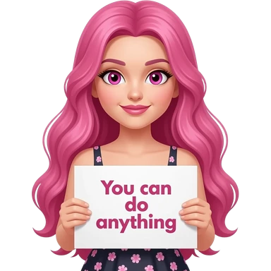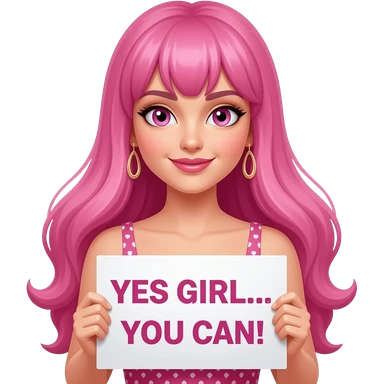 sexy girl with long pink hair and pink eyes wearing a dress holding a YES GIRL... YOU CAN! sign emoji