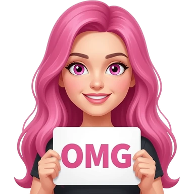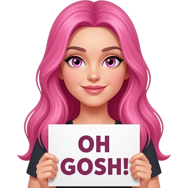 sexy girl with long pink hair and pink eyes wearing a holding a OH GOSH! sign emoji