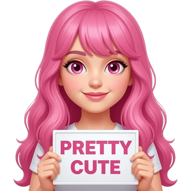 sexy girl with long pink hair and pink eyes wearing a holding a PRETTY CUTE sign emoji