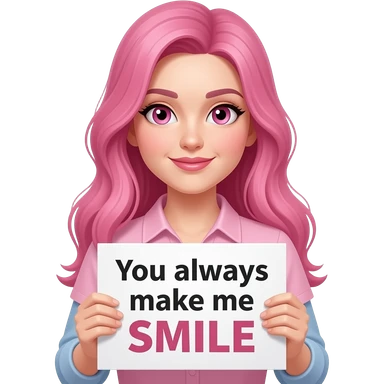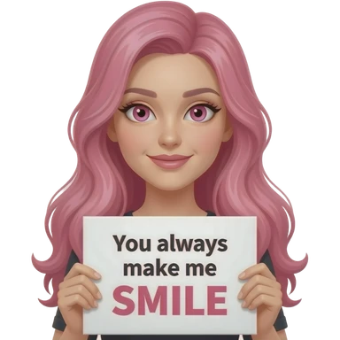 sexy girl with long pink hair and pink eyes wearing a holding a You always make me SMILE sign emoji