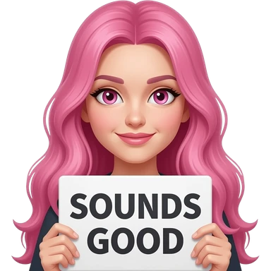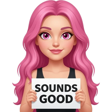 sexy girl with long pink hair and pink eyes wearing a holding a SOUNDS GOOD sign emoji