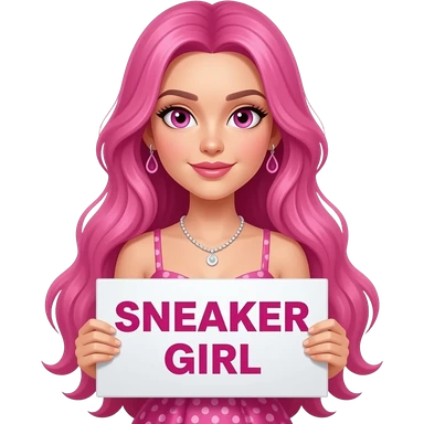sexy girl with long pink hair and pink eyes wearing a dress holding a SNEAKER GIRL sign emoji