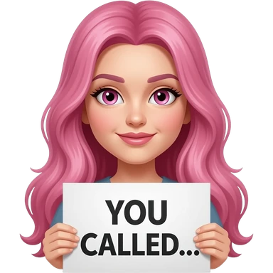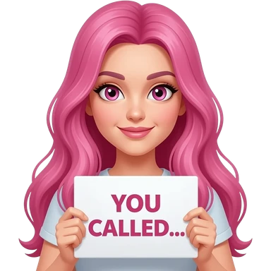 sexy girl with long pink hair and pink eyes wearing a holding a YOU CALLED... sign emoji