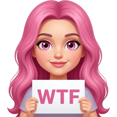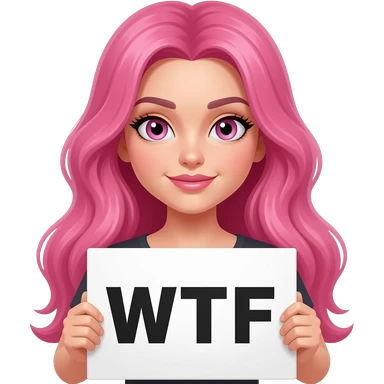 sexy girl with long pink hair and pink eyes wearing a holding a WTF sign emoji