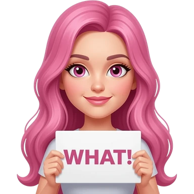 sexy girl with long pink hair and pink eyes wearing a holding a WHAT! sign emoji