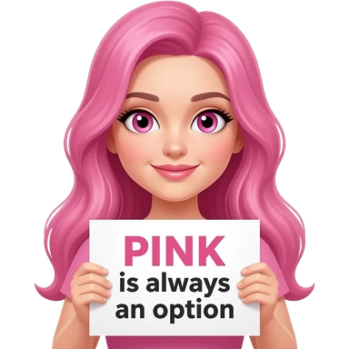 sexy girl with long pink hair and pink eyes wearing a holding a PINK is always an option sign emoji