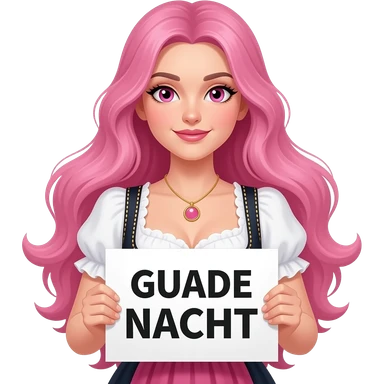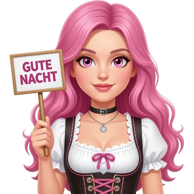 sexy girl with long pink hair and pink eyes wearing a dirndl holding a GUADE NACHT sign emoji