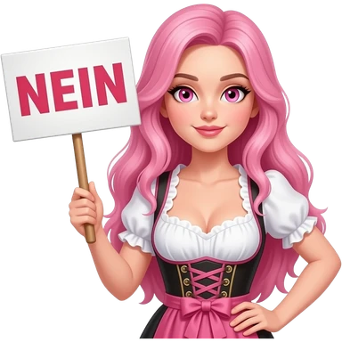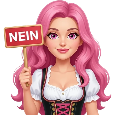 sexy girl with long pink hair and pink eyes wearing a dirndl holding a NEIN sign emoji