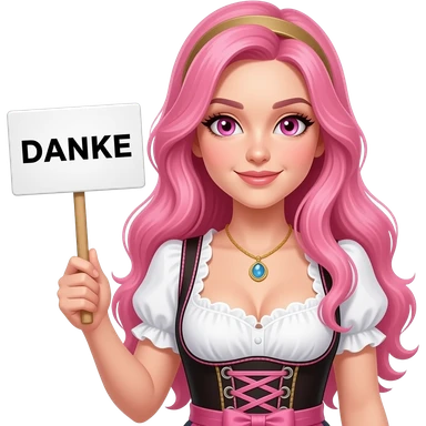 sexy girl with long pink hair and pink eyes wearing a dirndl holding a DANKE sign emoji