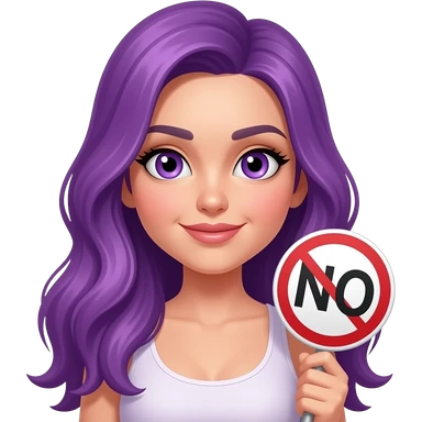 sexy girl with long purple hair and purple eyes holding a NO sign emoji