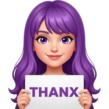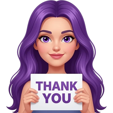 sexy girl with long purple hair and purple eyes holding a THANK YOU sign emoji