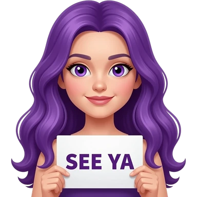 sexy girl with long purple hair and purple eyes holding a SEE YA sign emoji