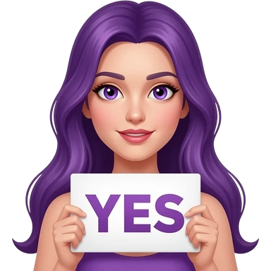 sexy girl with long purple hair and purple eyes holding a YES sign emoji