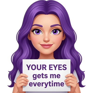sexy girl with long purple hair and purple eyes holding a YOUR EYES gets me everytime sign emoji