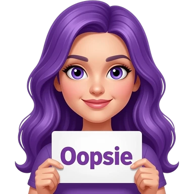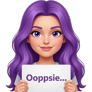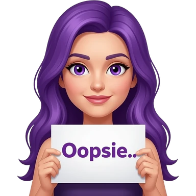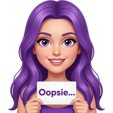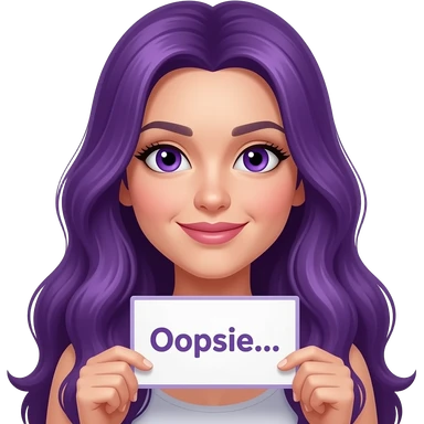 sexy girl with long purple hair and purple eyes holding a Ooopsie... sign emoji