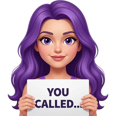 sexy girl with long purple hair and purple eyes holding a YOU CALLED... sign emoji