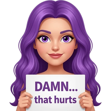 sexy girl with long purple hair and purple eyes holding DAMN... that hurts sign emoji