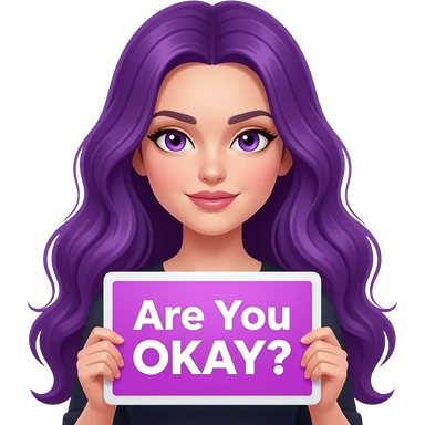 sexy girl with long purple hair and purple eyes holding Are You OKAY? sign emoji
