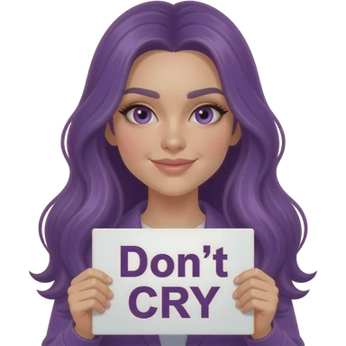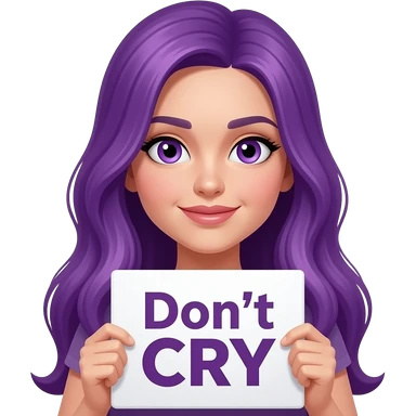 sexy girl with long purple hair and purple eyes holding Don't CRY sign emoji