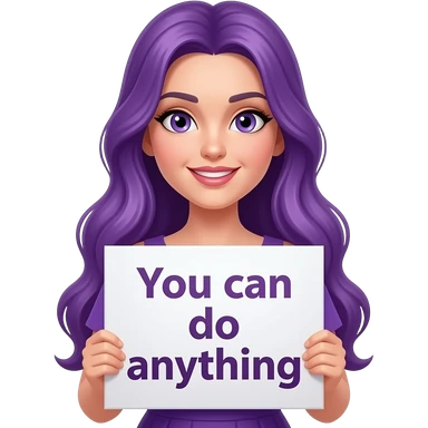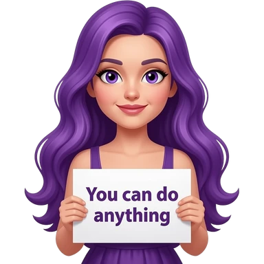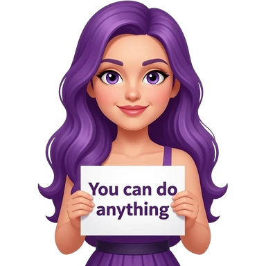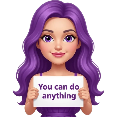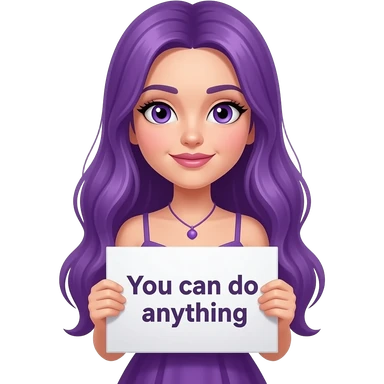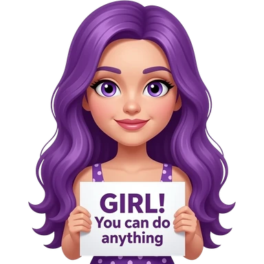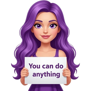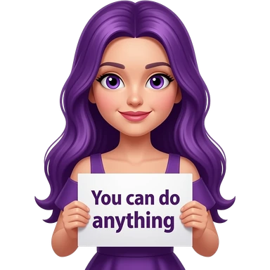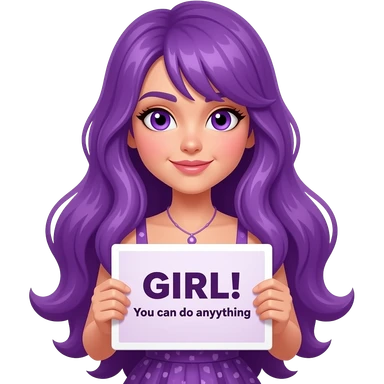 sexy girl with long purple hair and purple eyes wearing a dress holding a YES GIRL... YOU CAN! sign emoji