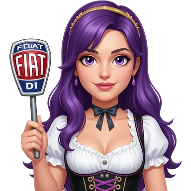 sexy girl with long purple hair and purple eyes wearing a dirndl holding a PFIAT DI sign emoji