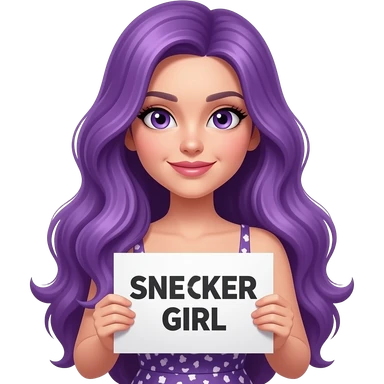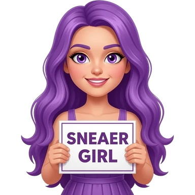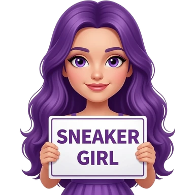 sexy girl with long purple hair and purple eyes wearing a dress holding a SNEAKER GIRL sign emoji