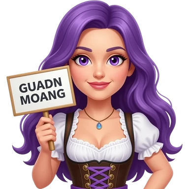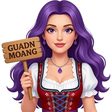 sexy girl with long purple hair and purple eyes wearing a dirndl holding a GUADN MOANG sign emoji