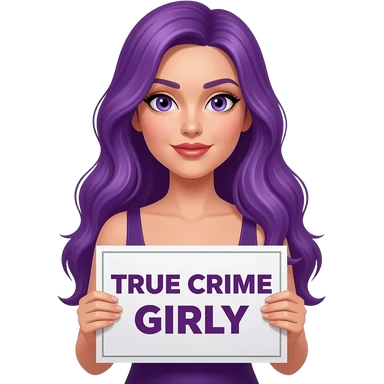 sexy girl with long purple hair and purple eyes wearing a dress holding a TRUE CRIME GIRLY sign emoji