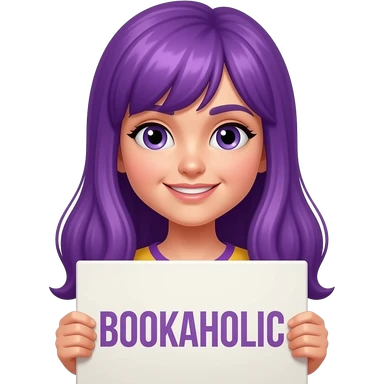 sexy girl with long purple hair holding a BOOKAHOLIC sign emoji | AI Emoji Generator