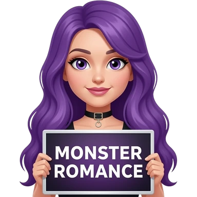 girl with long purple hair with a MONSTER ROMANCE sign emoji