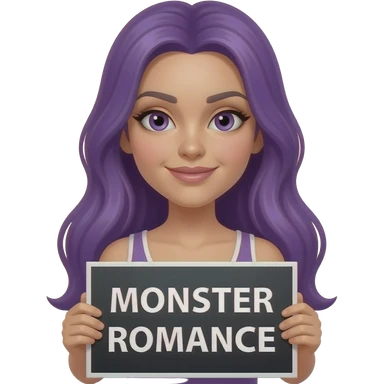 sexy girl with long purple hair holding a MONSTER ROMANCE sign emoji