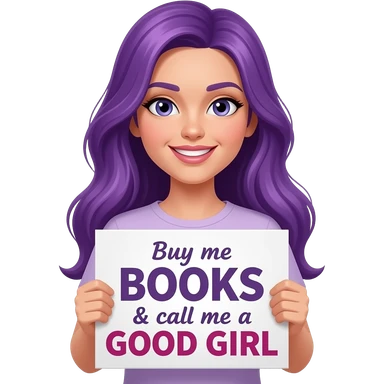 sexy girl with long purple hair holding a Buy me BOOKS & call me a GOOD GIRL sign emoji
