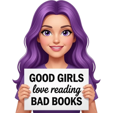 sexy girl with long purple hair holding a GOOD GIRLS love reading BAD BOOKS sign emoji