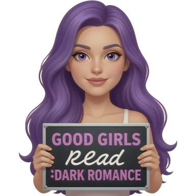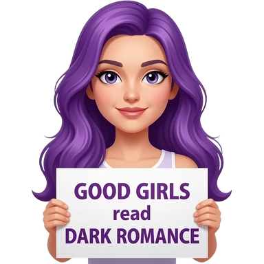 sexy girl with long purple hair holding a GOOD GIRLS read DARK ROMANCE sign emoji