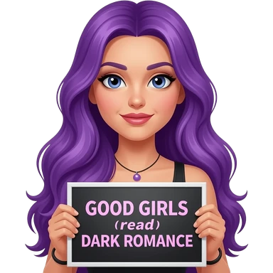 girl with long purple hair with a GOOD GIRLS read DARK ROMANCE sign emoji